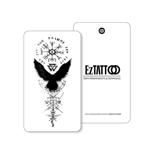Corvo Nórdico com Runas Tatuagem Temporária Realista