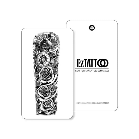Entre Asas e Horas Braço Fechado Tatuagem Temporária
